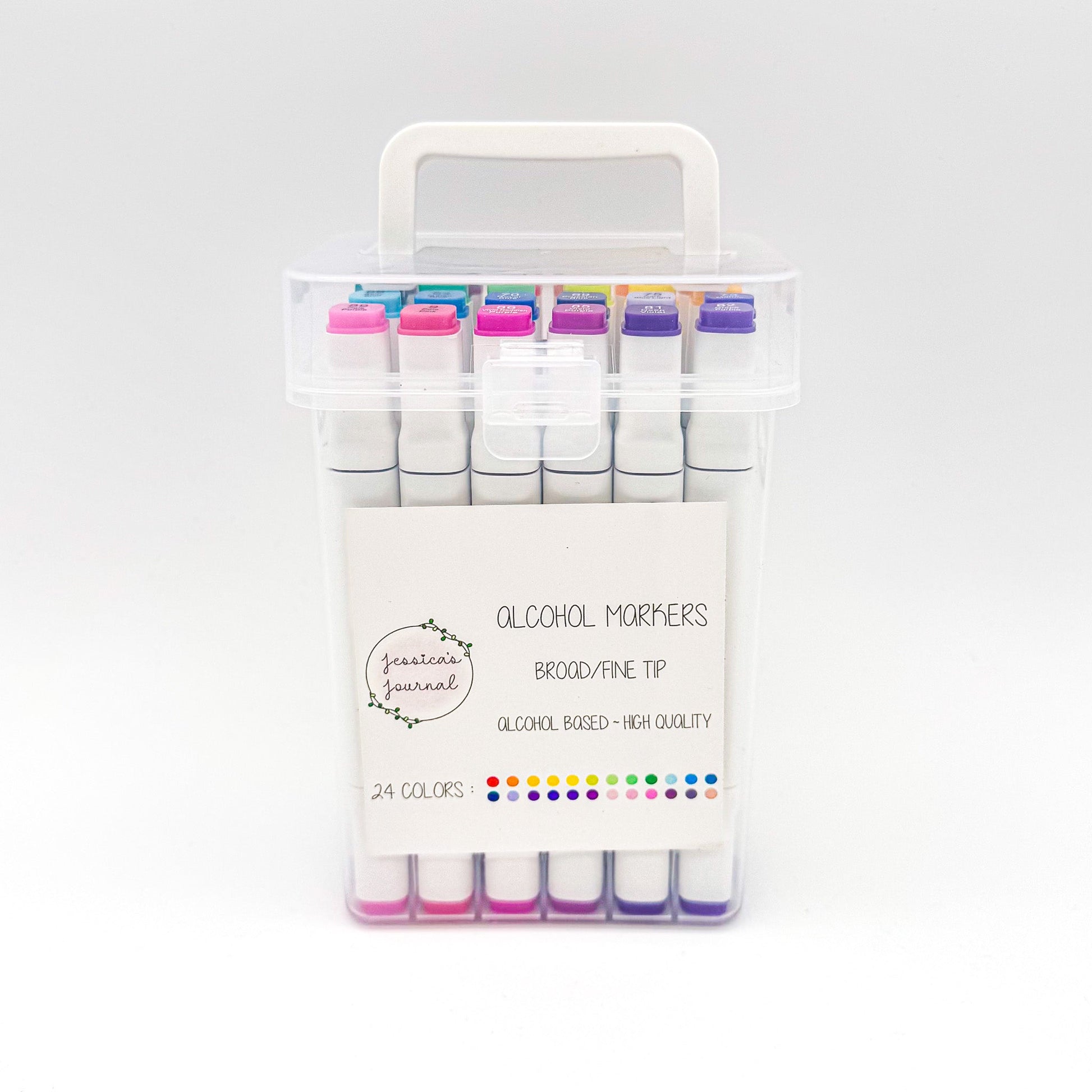 A set of 24 high-quality alcohol markers in a hard case with a handle.