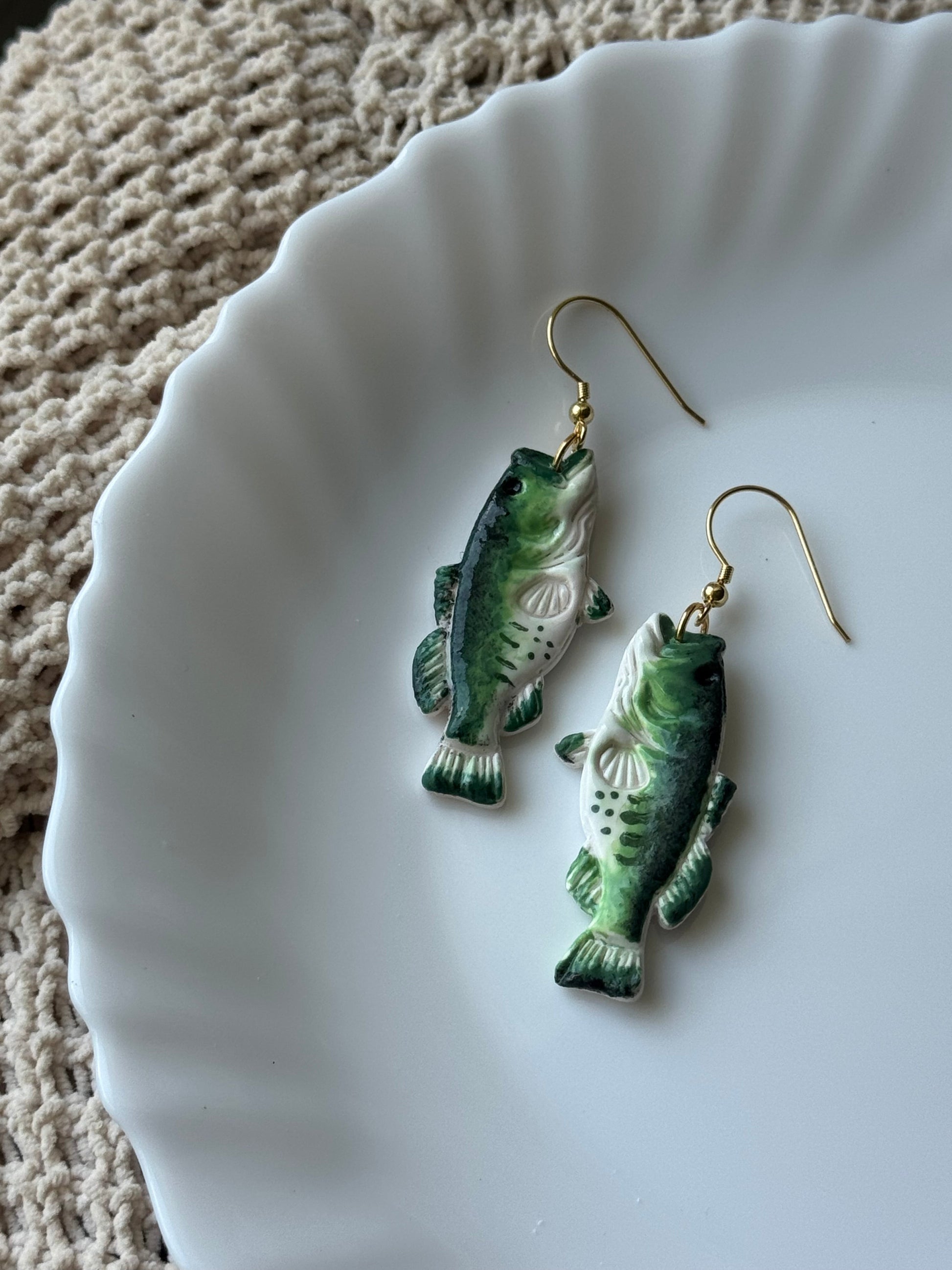 Earrings are made of polymer clay and hardware is 14k gold plated - nickel free. Each piece is rolled, cut, baked, sanded and assembled by hand, so sizes and custom-mixed colors will vary per piece. Due to the handmade nature of my pieces, slight imperfections are inevitable. Every piece is truly one of a kind.