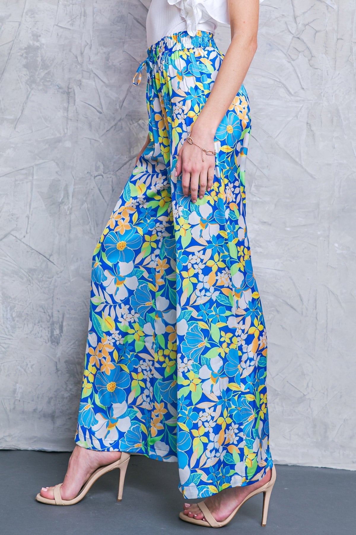 The BUILD YOUR DREAMS PANTS are perfect for any special occasion. Crafted from a printed satin fabric, the pants feature an elasticized waist with tie and wide leg for a flattering silhouette. Versatile and comfortable, they're an excellent choice for any special event.