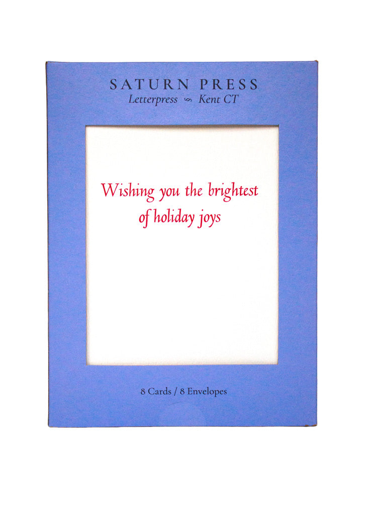 Holiday box sets come packaged in a blue box of eight letterpress cards and matching envelopes.