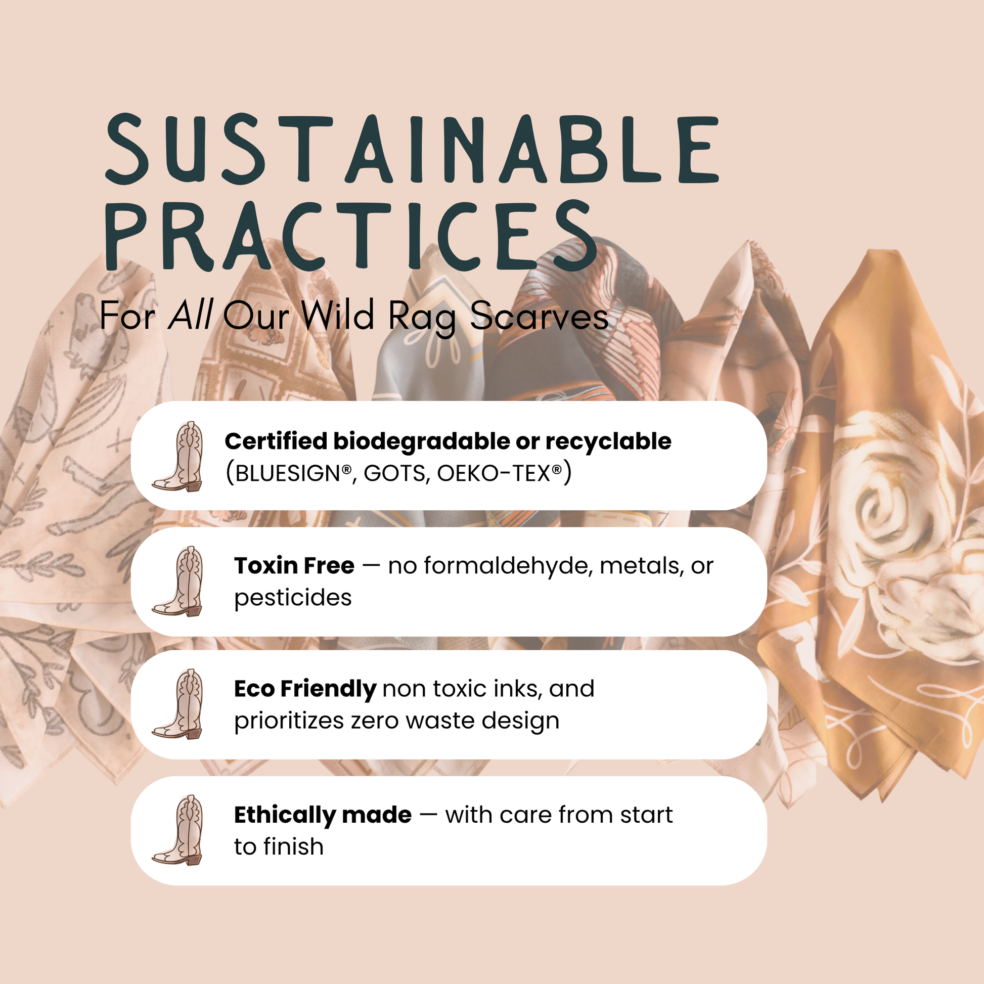 Inspired by western heritage and designed in Oregon, this western silk scarf blends wild west spirit with effortless style. Featuring 100% Luxurious Mulberry Silk. Elevate your cowgirl look with these elegant and unique wild rags. They're ultra-vibrant, lightweight, and flowy — the perfect cowgirl accessory for year-round wear. Tie it around your neck, in your hair, or on your bag for a pop of western charm.