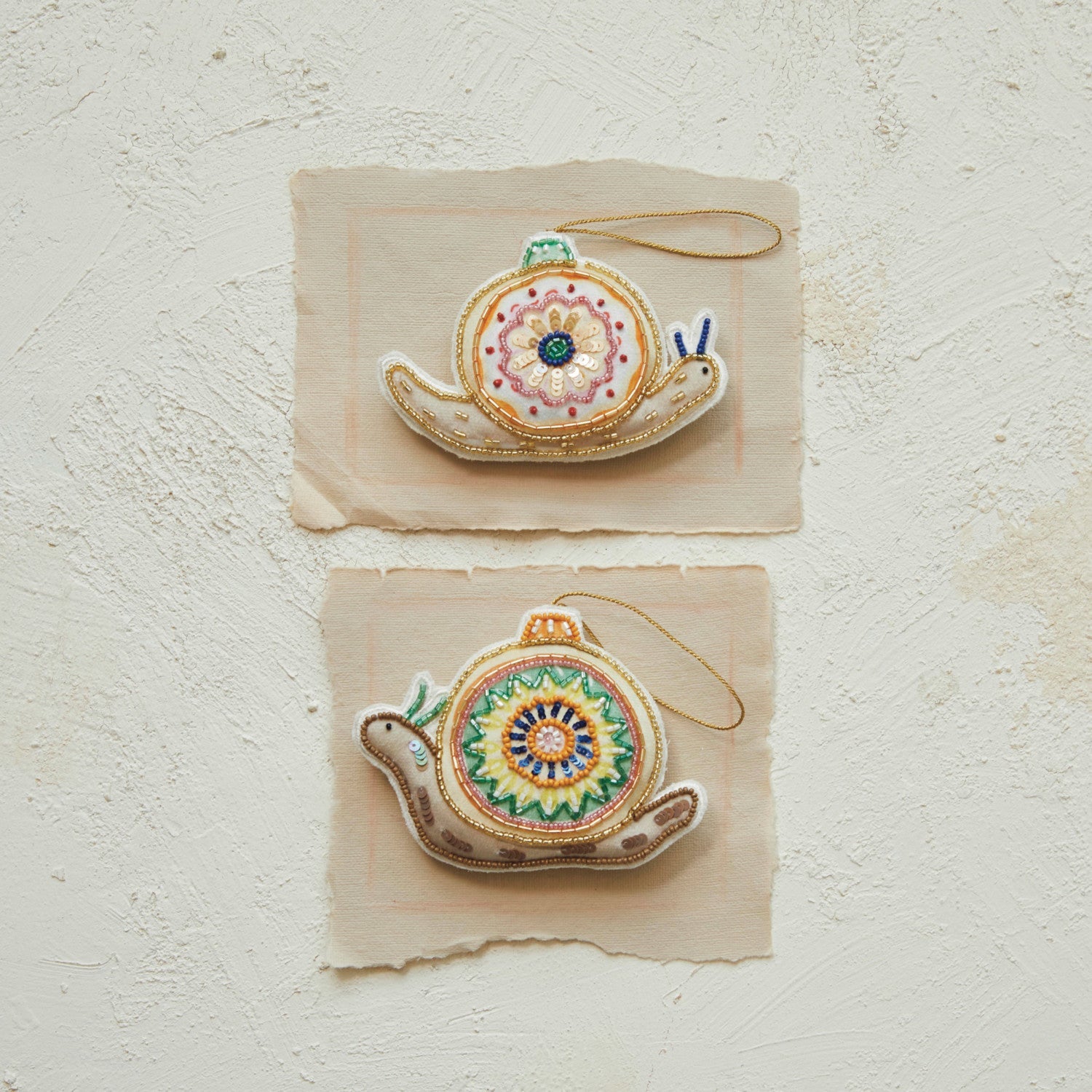 This cotton snail ornament with glass beads and sequins set is a cute and colorful way to decorate the home. The ornament features a cotton fabric snail that has a foam filling for a soft feel. The ornament is embellished with glass beads and sequins that come in various colors, such as pink, blue, green, and purple, and create a lovely contrast and a whimsical effect.