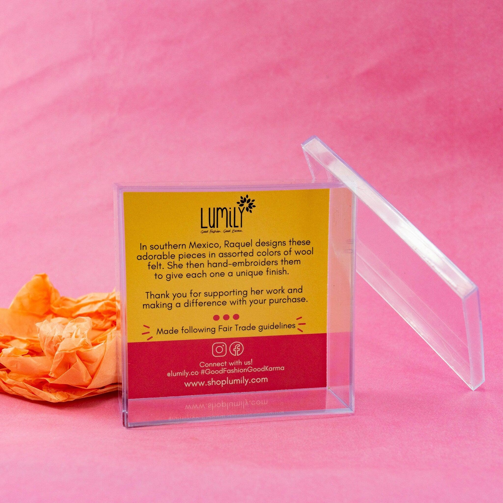 By purchasing these ornaments, you are supporting the work of these artisans and making a difference through fair trade practices. The back of each ornament is made of solid color felt. Each ornament is handmade in Mexico. Thank you for supporting their craft and their community.