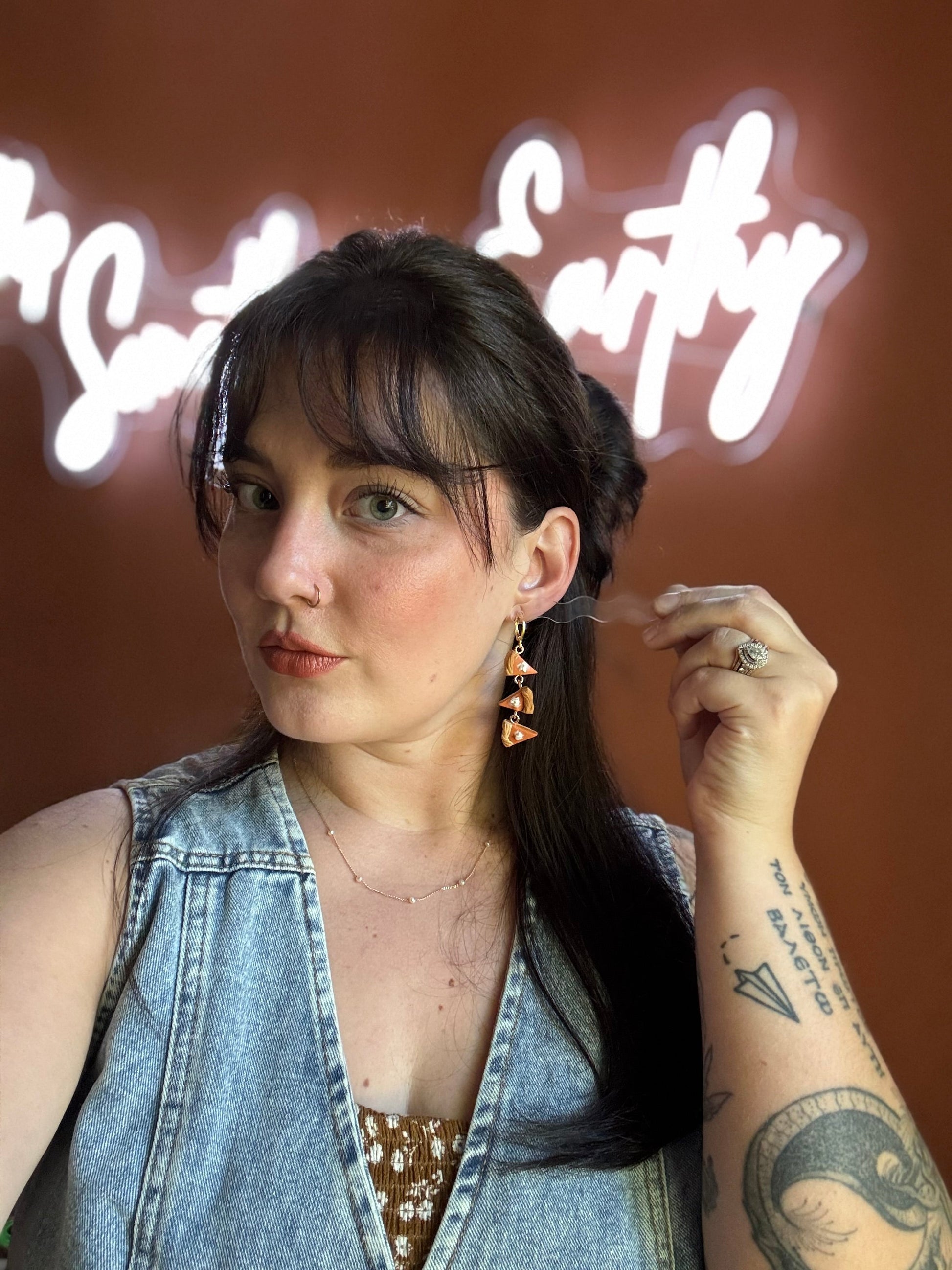 Earrings are made of polymer clay and hardware is 14k gold plated - nickel free. Each piece is rolled, cut, baked, sanded and assembled by hand, so sizes and custom-mixed colors will vary per piece. Due to the handmade nature of my pieces, slight imperfections are inevitable. Every piece is truly one of a kind.